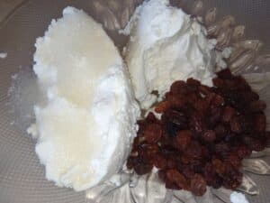 Într-o altă farfurie, am sfărâmițat halvaua. Deci, sunt două umpluturi diferite.