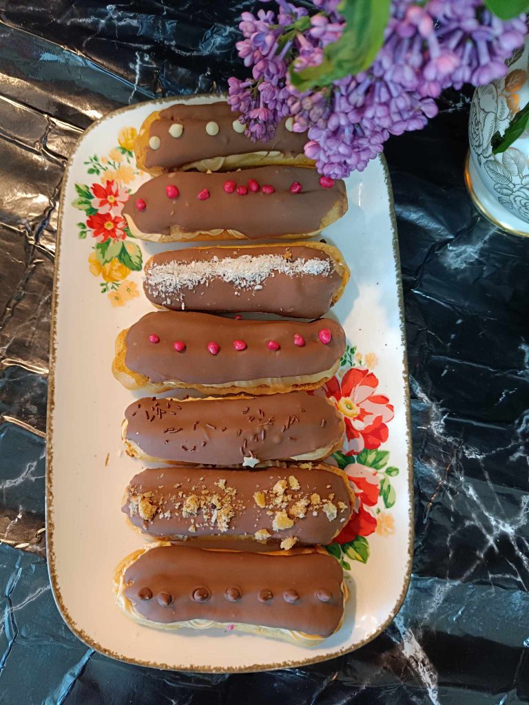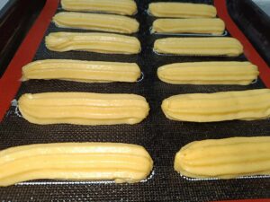 -Din aceasta compozitie ies in jur de 38-40 de coji de eclere cu lungimea de 12-15 cm.