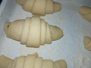 Ultima dospire: Așază cornurile în tava tapetată cu hârtie de copt și mai lasă-le să crească 15 minute.