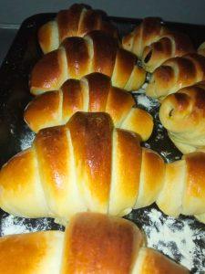 Temperatura și timpul de coacere: Preîncălzește cuptorul la 200°C și coace cornurile timp de 25-30 de minute, până devin aurii și frumos crescute.
