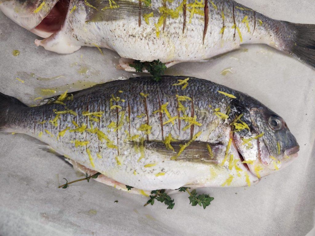 • 2 dorade proaspete (400–450 g fiecare), eviscerate