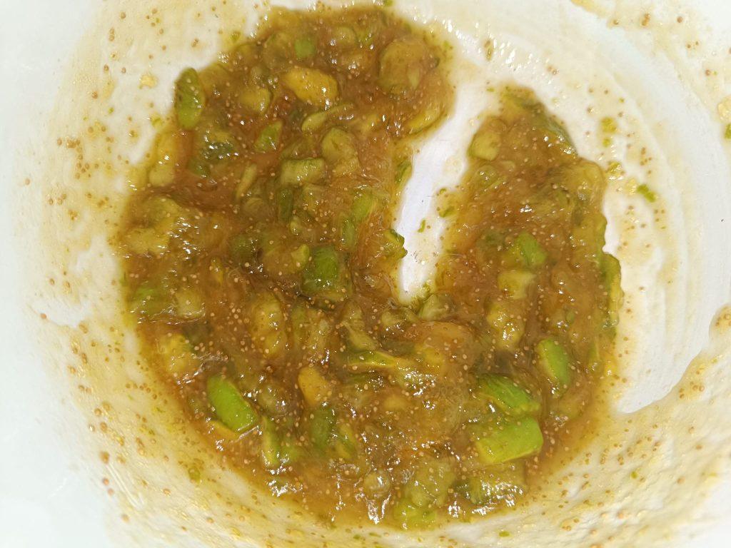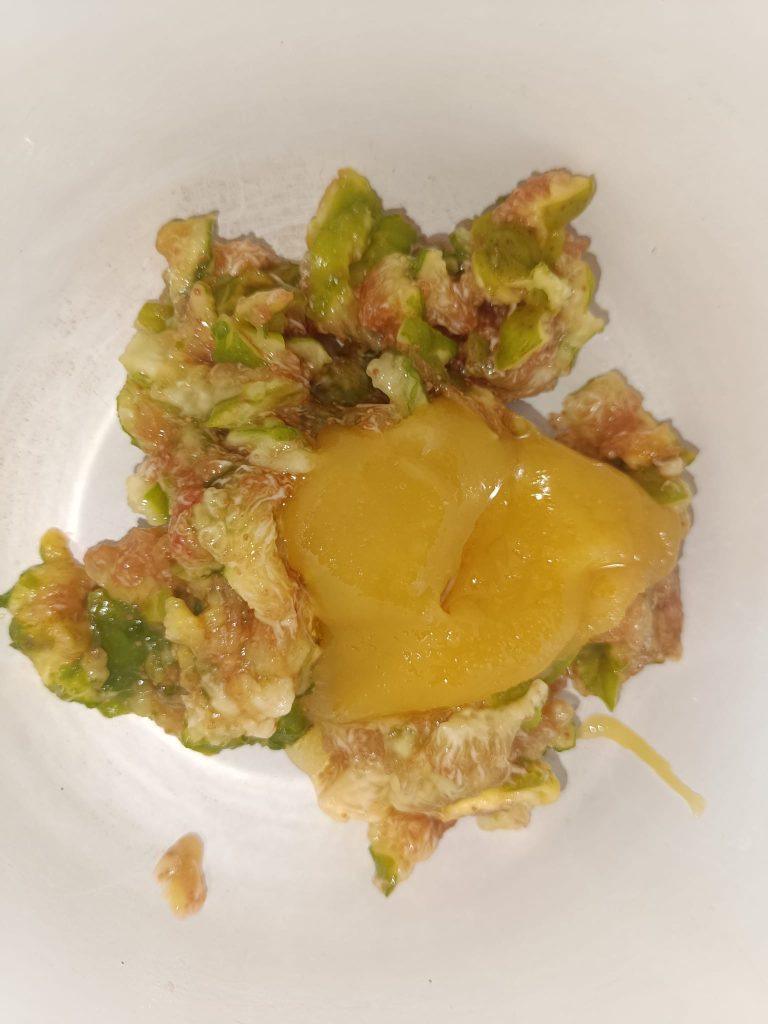 Pasul acesta este important: smochina crudă are multă apă și ar subția crema; prin încălzire scurtă, apa se evaporă și gustul devine mai concentrat. Pasează totul cu un blender vertical, dacă nu ai, folosește o furculiță și lucrează răbdător până când obții o pastă moale. Dacă simți că amestecul e prea dulce, câteva picături de zeamă de lămâie vor trezi aroma și vor echilibra gustul. Lasă piureul să se răcorească la temperatura camerei, dacă e fierbinte, înmoaie crema.