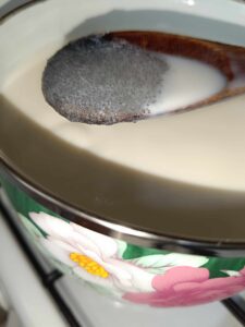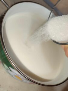 Începeți prepararea güllaçului pregătind laptele dulce. Încălziți laptele într-un vas mare și adăugați zahărul. Amestecați continuu până când zahărul se dizolvă complet. Nu este necesar sa fierbeti laptele, este de ajuns cat se dizolva zaharul. Lăsați amestecul să se răcească la temperatura camerei, daca este fierbinte. Acesta va fi lichidul în care veți înmuia foile de güllaç.