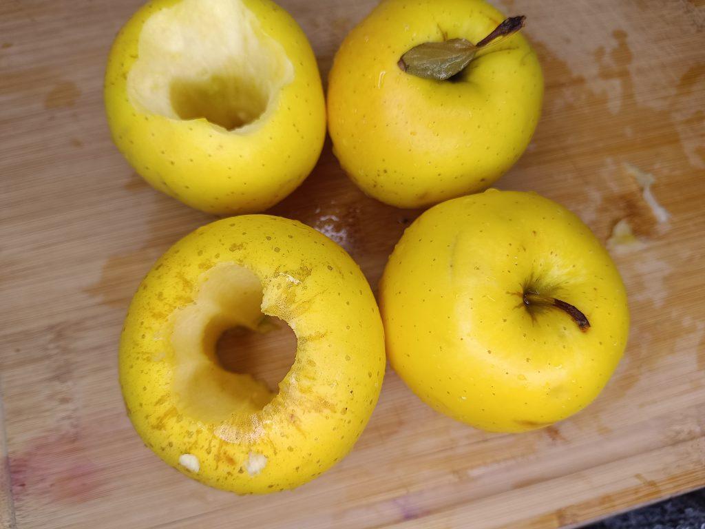 Începe prin a alege mere frumoase, ferme și dulci. Spală-le bine și taie câte un mic căpăcel în partea superioară. Cu o linguriță, scoate cotorul și semințele. Așază merele într-un vas termorezistent, unge-le cu unt topit și presară pe ele un amestec de zahăr brun și scorțișoară. Dacă îți place aroma subtilă de rom, adaugă câte o linguriță peste fiecare măr.