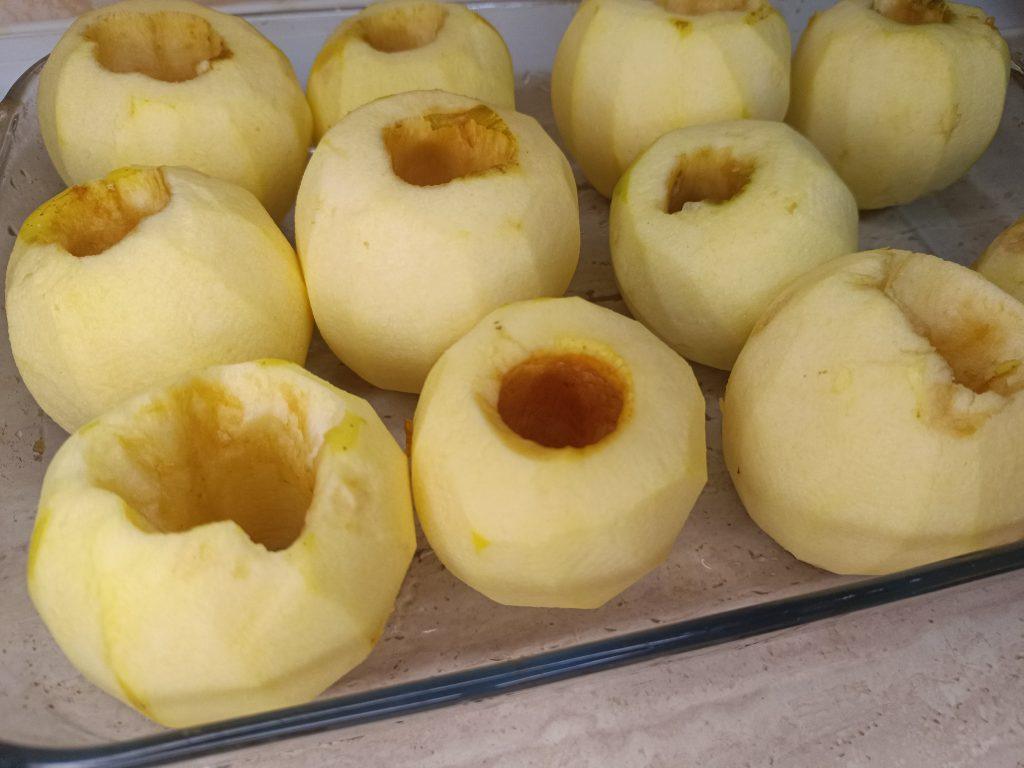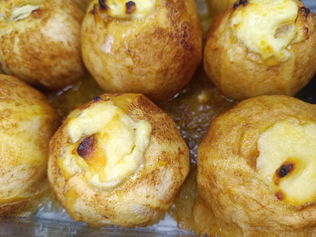 Pune tava în cuptorul preîncălzit la 180°C și lasă-le aproximativ 30–35 de minute. În timpul coacerii, merele se vor înmuia, iar umplutura de brânză va deveni aurie și ușor rumenită la margini.