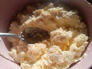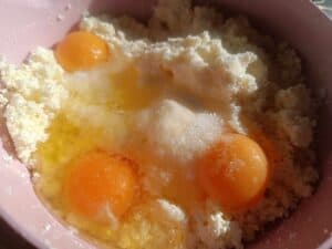 Pregătirea umpluturii: Într-un bol, amestecă brânza (250-350 g) cu 2 ouă și adaugă sare, dacă folosești brânză dulce. Omogenizează bine amestecul până când compoziția devine cremoasă și ușor de întins.