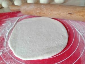 Împărțirea aluatului: După ce aluatul s-a odihnit, împarte-l în bile egale. Fiecare bilă se întinde ușor cu sucitorul până ajunge la un diametru de 17-20 cm. Suprapune foile, unse între ele cu amestecul de unt și ulei, apoi lasă-le să se odihnească pentru încă 30 de minute.